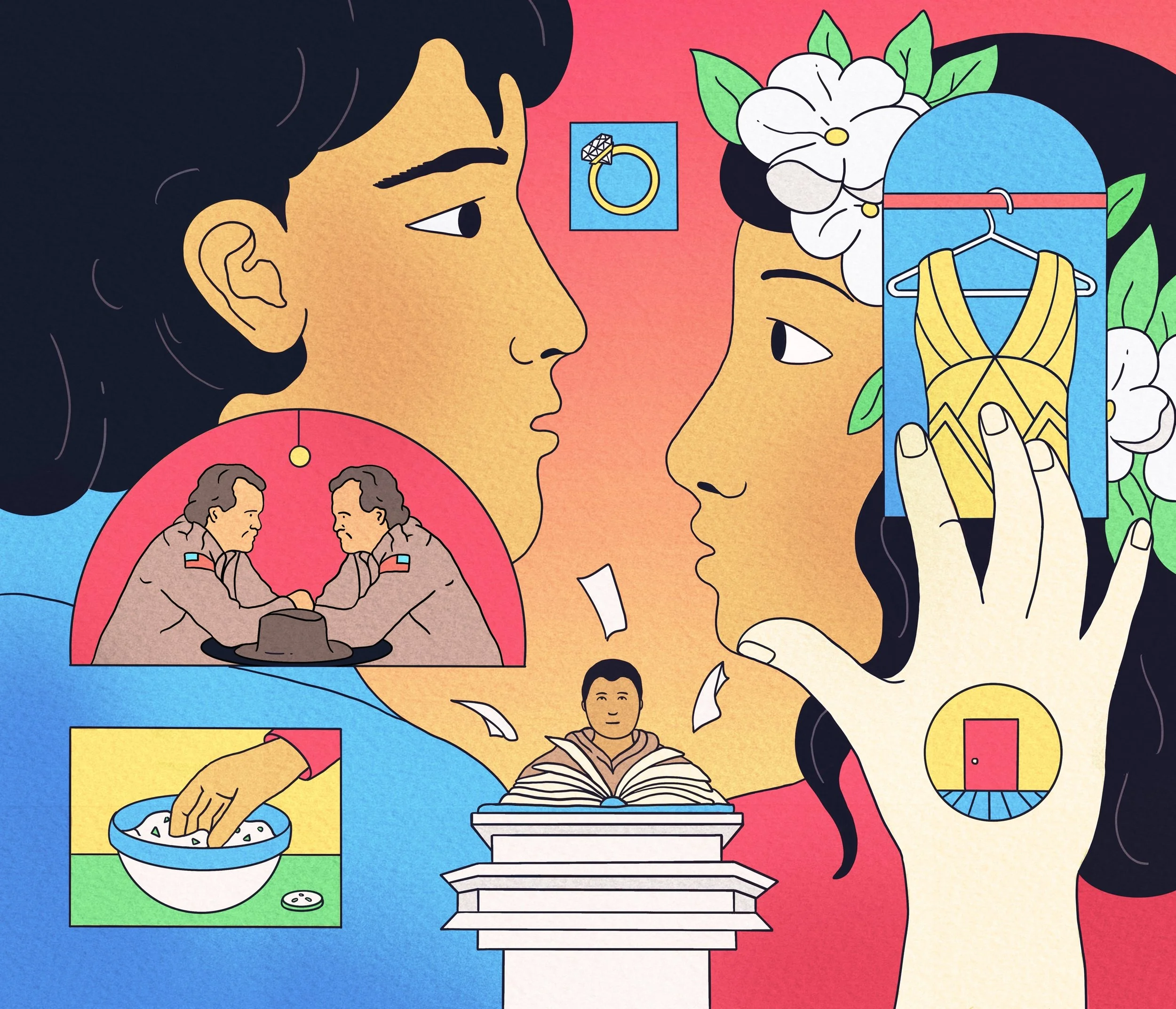 I was commissioned by TimeOut London to create an illustration to accompany a feature on the most unusual and memorable things audiences have done at immersive theatre and event experiences.